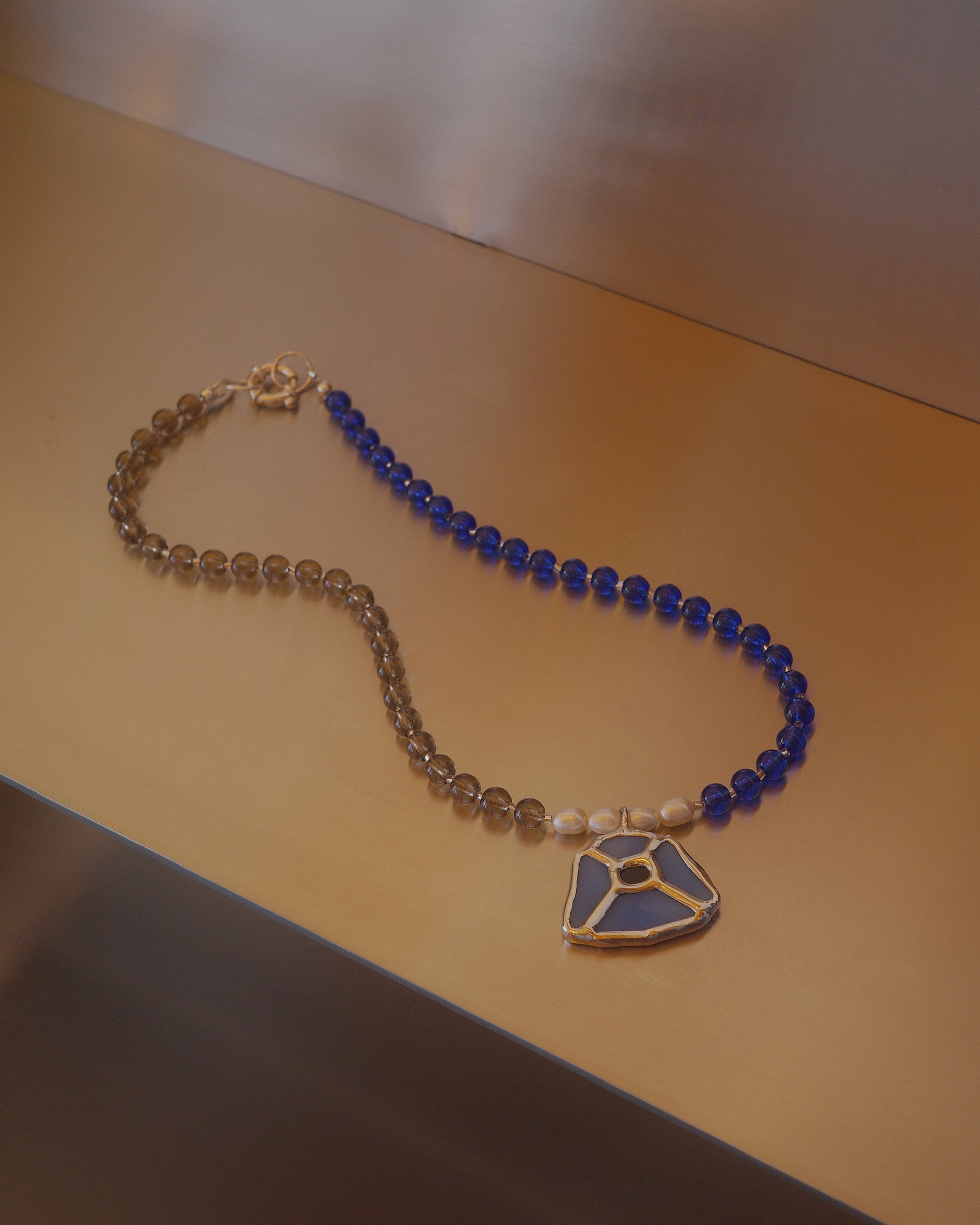 Pendant contains glass and lead.
