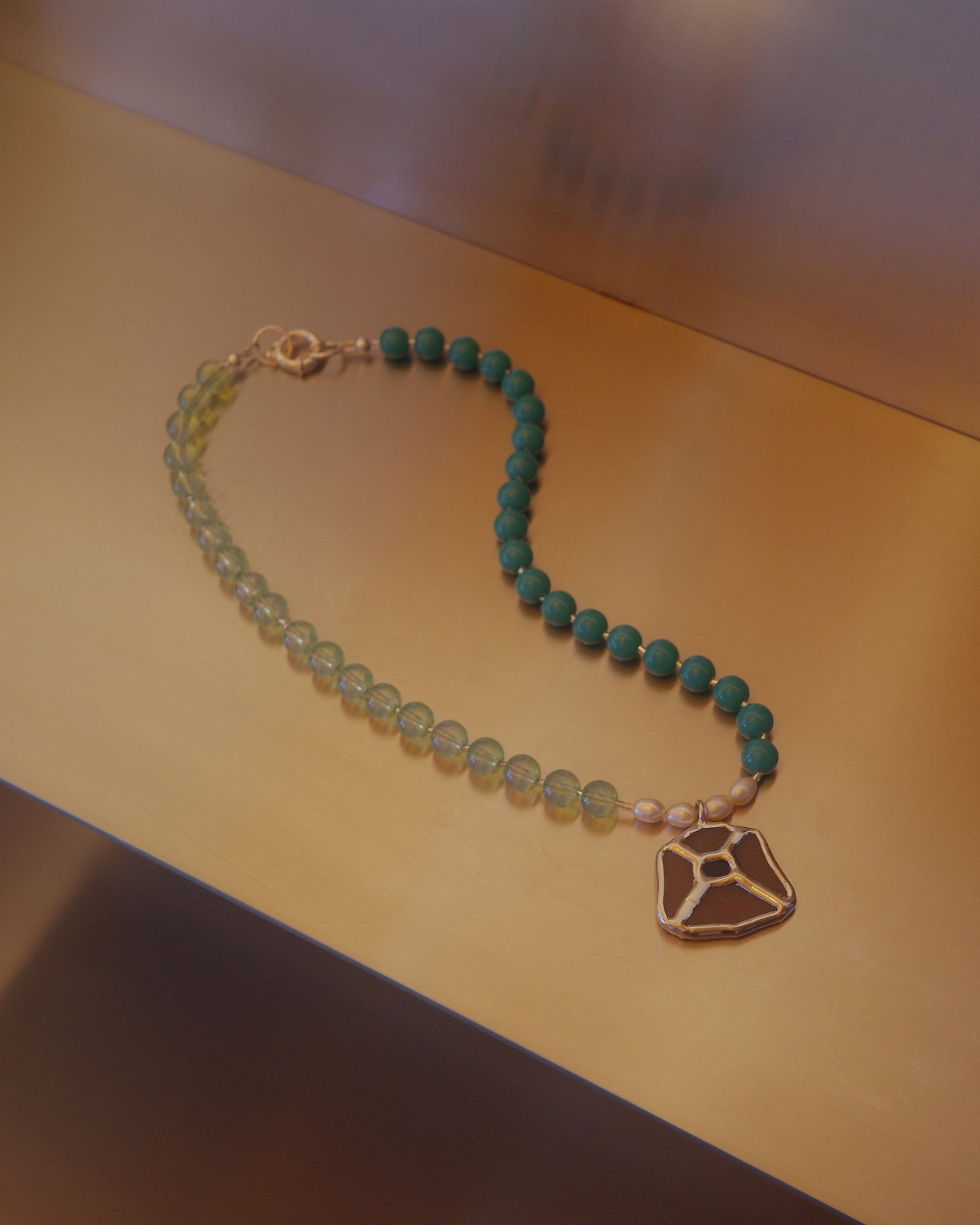 Pendant contains glass and lead.
